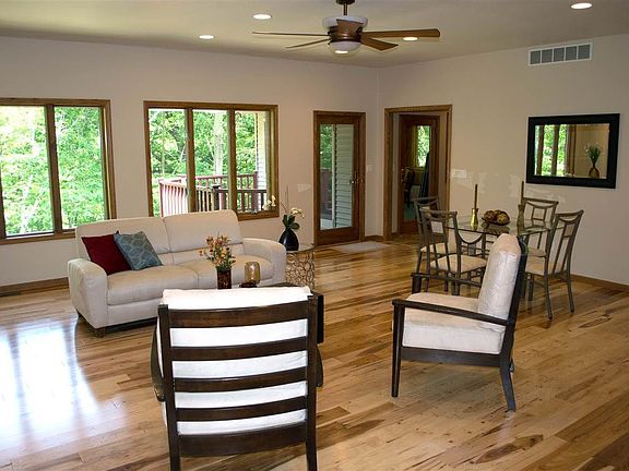 Completely private & serene lot with beautiful wooded views & nature. 1.98 Acres! New cabinetry & countertop in kit '15. New lighting & ceiling fans in kit, LR & MBR '15. New Bosch dishwasher, Bosch double oven & cooktop '15. Newer rustic hickory hardwood flooring in LR. Newer hickory laminate flooring in 2nd BDR. Fresh interior paint throughout. Luxury MBR with double vanity, soaking tub, tile shower & his & her walk-in closets. Unfinished walk-out basement. Four seasons room with attached deck.