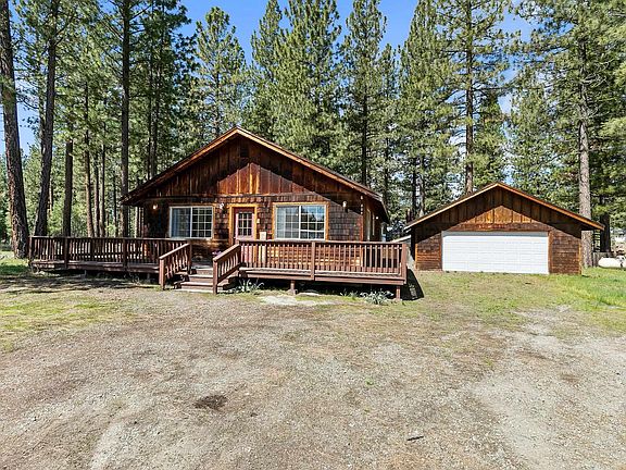 Welcome to the charming woodland retreat at 804 Main St in Portola, CA. This delightful property offers the perfect blend of mountain charm and modern comfort- Where it feels like home from the moment you walk in! Whether you're seeking a peaceful escape, a tranquil year-round residence, or a short term rental investment property; this adorable home offers enjoyment and adventure throughout the beauty of every season. Inside you'll find a cozy living space offering three bedrooms & two full bathrooms, a large kitchen, and a separate laundry room that includes the washer & dryer. You'll enjoy the bright and airy atmosphere with gorgeous views of the trees through every window! Step outside and find the generously sized yard perfect for entertaining or relaxing in the fresh air. The large wrap-around deck provides a shady spot for outdoor dining while enjoying the beauty of the stunning mountain views! Extra space is offered with the detached two car garage, and plenty of extra room for parking. The convenient location makes it easy to experience everything that Portola has to offer. Enjoy instant access to hiking and mountain biking, all while just minutes away from the amenities of Downtown Portola. Ease of access to the Highway for quick trips to Reno and Lake Tahoe! Don't miss out on the opportunity to make this charming property your own.