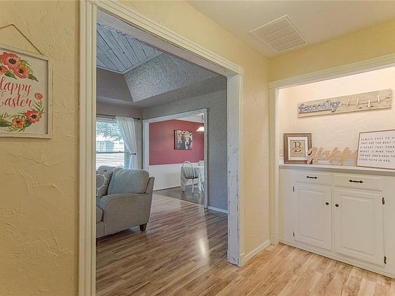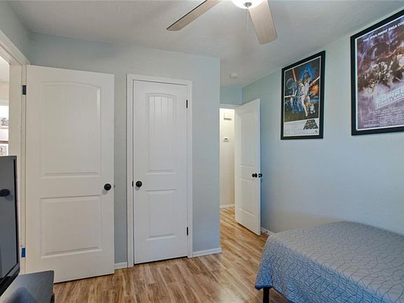 Beautiful 3 bed 2 bath home, on a huge corner lot. Entry has a darling landing spot for your favorite collections and storage or can be used as a bar. Laminate flooring throughout, including bedrooms. Both bathrooms have been remodeled and guest bath features a shiplap wall, with blue cabinets, new flooring and new tiled shower. Large master bedroom with beautifully remodeled bath room featuring his and hers sink with granite counter tops and new, tiled shower. Kitchen features white cabinets and dining space. Huge backyard with large covered patio and storage shed. This one will go fast!