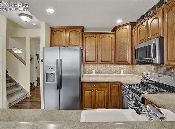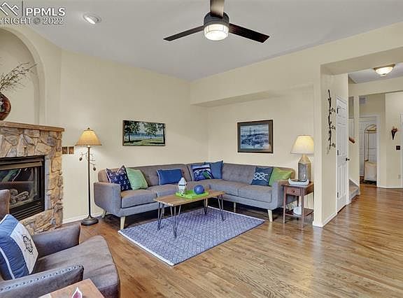 Luxury End Unit Townhome impeccably maintained that backs to Meadow Wood Park and Walking Trails that are right out your back door. Enjoy softball, tennis, pickleball, soccer, hockey, and the kids playground without getting in your car! 2 Gas Fireplaces will be appreciated when you have Family over for the Holidays. Open Floor Concept along with Hardwood Floors throughout the main level will sure to impress. Kitchen boasts Stainless Steel Appliances with Gas Range, Crown Moulding, Counter Bar, Custom Backsplash, and Undermount Lighting. Enjoy the New 17 x 10 Composite Deck accessed from the Dining Room to enjoy the Mountain Setting. Multi Purpose Front area has room for a Desk or perhaps a Sitting Area to cozy up and read a good book. Master Bedroom has a Walk in Closet and an adjoining Full Bathroom. 2 other Upper Level Bedrooms overlooks the Wonderful Park and Scenery. The recently Finished Walkout Basement has Luxury Vinyl Planking, a Kozy Heat Gas Fireplace, and a nicely appointed bathroom. Walk outside to the 13 x 7 concrete pad to enjoy the Pines and Aspens! Furnace and Water Heater were replaced one year ago. This home has been meticulously cared for and appears to be in brand new condition! This Home allows for a peaceful, quiet lifestyle with mountain views with quick, easy access to shopping and amenities! Perfect location in the Evergreen Heights Community with exterior maintenance and snow/trash removal is taken care of.