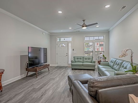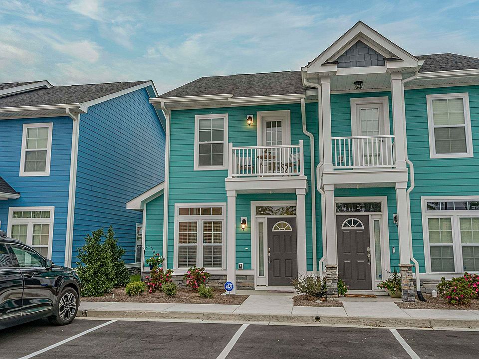 Built in 2022, this like new beautifully maintained end unit townhome is in a prime location of Market Common. Take your golf cart to the beach, walking distance to shops, restaurants, bakeries, coffee shops and more! Enjoy all that Market Common has to offer! This immaculate townhome features two bedrooms upstairs each with their own full bathroom and additional half bathroom downstairs.  Downstairs features a large open floor plan including living room, kitchen and dining area. 9 foot ceilings downstairs, the main living area has laminate floor throughout, tile in the bathrooms and carpet upstairs. The kitchen features granite countertops, stainless appliances, refrigerator, range, dishwasher, built in microwave, and breakfast bar. Off of the kitchen is a private enclosed patio where you can enjoy grilling out. There is also an attached storage closet outside for all of your beach gear and parking is located in front of the unit.   Upstairs features the primary bedroom in the front of the home with a large closet, tray ceilings and remote controlled ceiling fan. The primary bathroom includes granite countertops and beautifully tiled walk in shower with glass doors. There is also a door off of the primary bedroom that leads to the balcony where you can relax and enjoy overlooking the neighborhood.  The upstairs landing area separates both bedrooms with a laundry closet with washer and dryer, and a separate linen closet. The second bedroom includes tray ceilings, remote controlled ceiling fan, closet, and full bathroom with tub.  HOA includes exterior insurance, landscaping, cable, internet, water, sewer and trash. Live the Market Common lifestyle and enjoy the community lake, dog park, playgrounds, dining, shopping and entertainment! Great as a primary residence, second home, or investment property! Schedule your tour today! Square footages are approximate. All information is deemed reliable but should be verified by buyer.