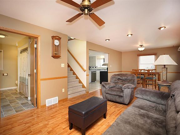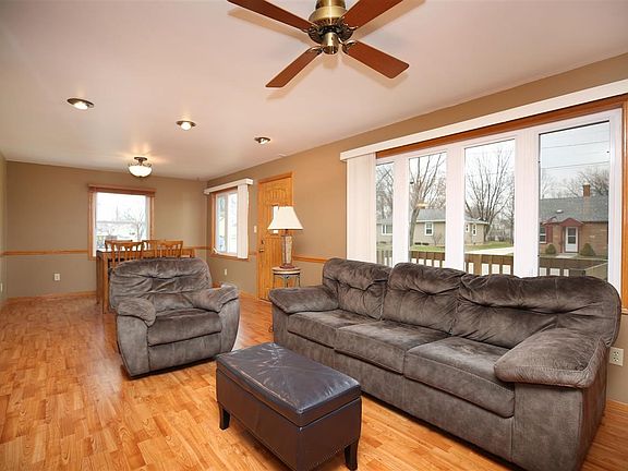 This well maintained 2-3 bedroom 1.5 story has an open floor plan perfect for entertaining or everyday living! Step inside to the bright living room flanked with laminate wood floors and washed with light from the abundance of windows. The main floor flow creates a seamless feeling between the living, dining, and kitchen! The fully applianced kitchen comes stocked with cabinetry and features a large stone faced center island and plenty of counter prep space. Tucked off the living area is the oversized main floor full bath with laundry area. The upper level is comprised of an HUGE master as well as a second bedroom with bonus area or third bedroom. A convenient half bath completes the upper level living space. Additional features include: full basement, oversized 2.5 car garage, oversized concrete patio, and much more. Many large updates per the Seller: roof, siding, water heater, front porch, and load of extra's! Buy in confidence this home comes pre-inspected and offers a 1 year HMS Home Warranty.