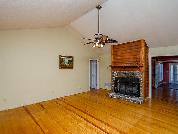 SECLUDED RETREAT ON 3 ACRES! 24x24 WORKSHOP, BASEMENT,& 660 FT OF WATER FRONTAGE ON A STOCKED POND! Home has heart of pine hardwood floors, wood-burning fireplace, 2 1/2 car garage, and a covered porch big enough to serve family supper on. Kitchen has SS appliances & plenty of cabinets. Sunroom has pond views from every angle,and two sets of french doors that open it up to the kitchen & dining room.Great space to entertain! Owner's suite has walk in closet, double sinks, & 2 person jacuzzi tub. There are blueberry bushes, plum & peach-plum trees, & pear trees that bear loads of fruit each year. Driveway & Pond are shared with only one other property owner. Older model trailer on property is used for storage. You will feel like you are on vacation every day you come home. Call now for your private showing!