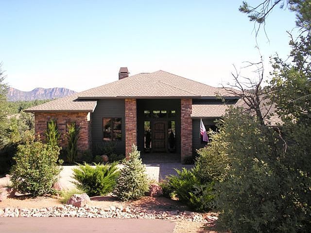 This stately home with panoramic views is highly upgraded with custom hardwood flooring, finished woodwork, knotty alder cabinetry and doors, Pella windows, and upgraded bathroom fixtures. The kitchen is a cook's dream come true with granite countertops, a large island, vegi-sink, built-in premium appliances, gas cooktop, wine cooler, pendant lighting and walk-in pantry. A wood accented office space with built-in cabinetry adjoins the well-appointed great room with a grand stone fireplace, and entertainment center. Floor to ceiling windows and doors lead to a spacious patio overlooking the Granite Dells. The three in-suite bedrooms are separated for privacy and each open to a patio. The master suite welcomes you to enjoy the gas fireplace, seating area, large built-in closet, granite