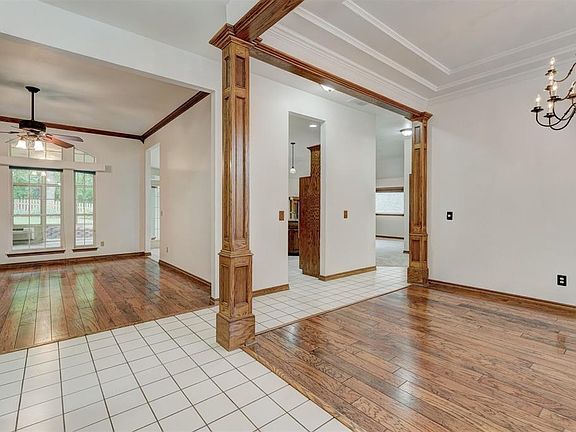 Back on the Market after the seller has vacated, painted, and replaced the carpet, This Northeast Edmond home has been well cared for and offers the extra 204 square feet of a four-season sunroom and backs to a large private heavily treed acreage. Picture windows in the Kitchen and Family room give an uninterrupted view of the private land that backs to this property. Current owners have updated all three baths in this four-bedroom home with two living and two dining. The eat-in kitchen has new granite countertops and opens to a large family room with a fireplace, a built-in bookcase, and a cabinet. The living and dining rooms have beautiful hardwood floors. A separate MIL bedroom or study has a large cedar closet and is adjacent to a full bath. The laundry room stands alone in the bedroom wing with built-in ironing board. The main bedroom at the back of the house opens to the Florida room. Many updates of major mechanicals: 2012-2014 H/A units, Water Heater, Dishwasher, Microwave