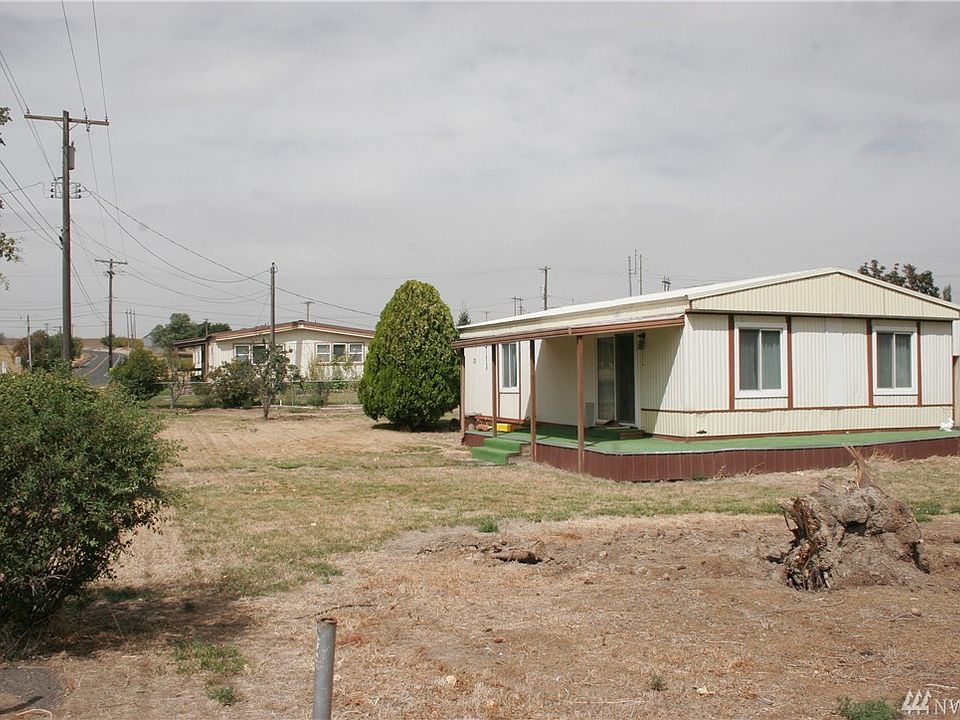 Cute mobile with title eliminated on 3.5 city lots. Large lot with 24 x 24 Shop on property with paved driveway. 3.5 City lots with irrigation. Nice size wrap-around deck. Home has new carpet and sub flooring replaced just one year ago. 2 bed/1 bath easy care living with room to park and RV in the paved driveway. Plenty of room for flower beds or a garden.