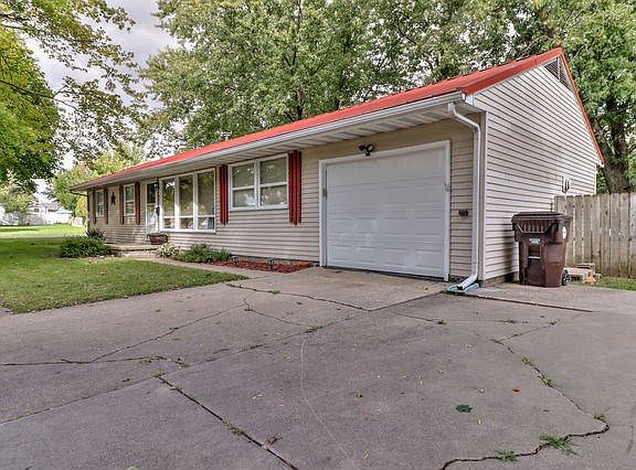 Lovely ranch style home on a corner lot in Rantoul! This spacious home features 4 bedrooms, 2 full bathrooms, a fully equipped kitchen & a one car attached garage with a two car driveway. The backyard is fully fenced in with a patio to enjoy evenings with friends & family. Original hardwood flooring runs through out the living room, dining room, hallway & three bedrooms. Living room & dining room also feature beautiful wood wainscoting. A newer maintenance free metal roof was installed that matches the shutters & vinyl siding to create a great curb appeal. Kitchen appliances have been updated & stay with the house as well as the washer & dryer. With close to 1300 sq ft, this home is perfect for families or first time home buyers to fit any needs. Great move-in ready, 4 bedroom, 2 bathroom home for under $100,000! Schedule your showing today!