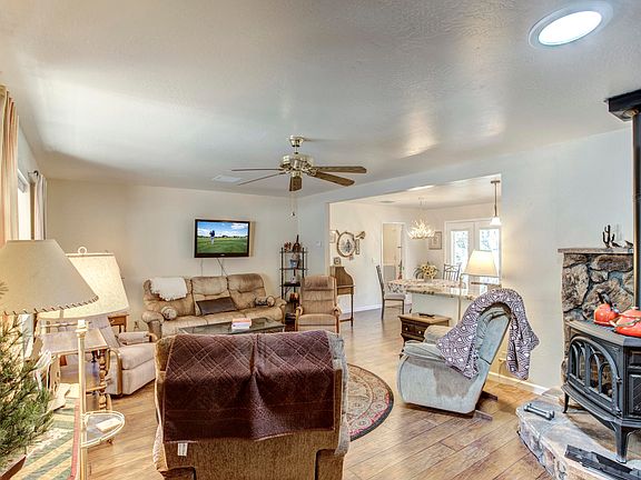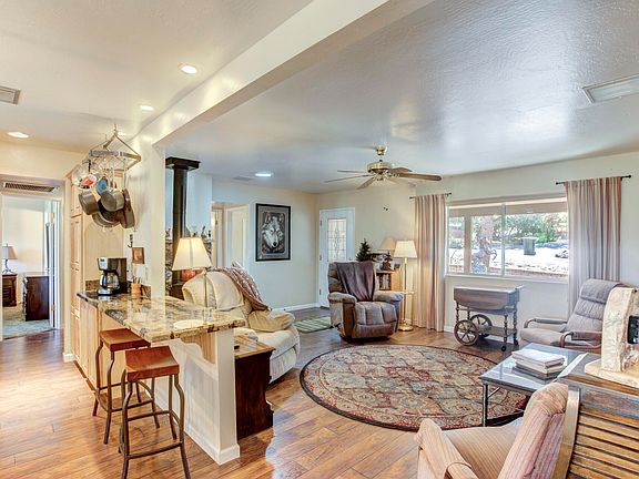 Beautifully updated site-built home in Payson North! This 2 bedroom, 2 bathroom home features 1,126 sq. ft., a 1+ car garage, 2 workshops, storage shed, and RV parking. The living room has laminate wood floors, a gas fireplace, and an open floorplan to the kitchen. The kitchen has been completely updated with beautiful cabinets, granite counter tops, a pantry, new appliances, and a kitchen island with a breakfast bar. The master bedroom features a walk-in closet and a full bathroom. The backyard is fenced and has great patio area and plenty of tall pines. Both workshops have power, and one has a double doors for easy access. You will love the covered back deck perfect for enjoying Payson's beautiful monsoon season. You'll love this home!