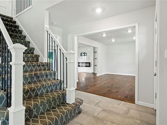 Welcome to this STUNNING New Mark home in the sought-after Staley High School district! Thoughtfully upgraded, the kitchen features granite countertops and modern appliances. The family room shines with a modern fireplace, (an additional electric fireplace in basement, both emit heat) hardwood floors, and floating shelves. Spacious Drop zone between Garage and Kitchen.  Kitchen provides 2 dining areas, formal and informal. Family room walks out to back yard.