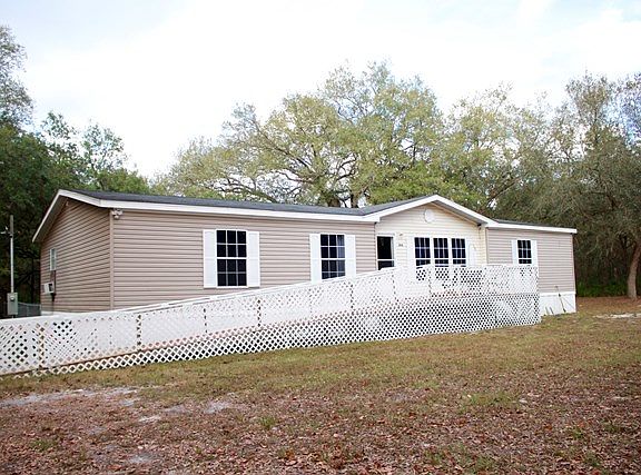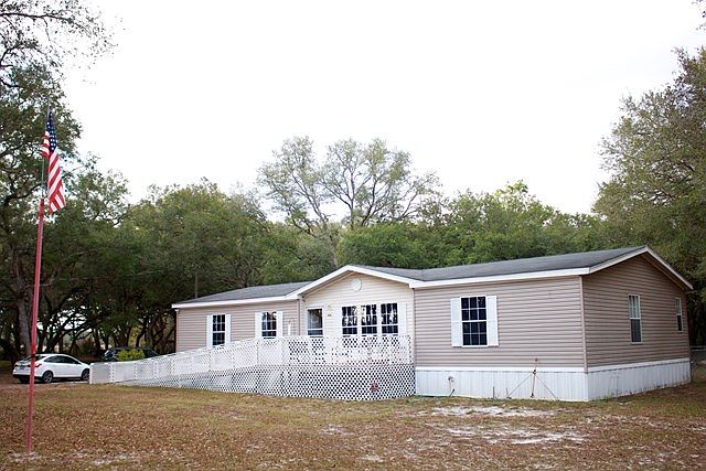 Amazing opportunity on this gorgeous, secluded 5 acre property. AMAZING, UPGRADED 2007 DWMH at 1800 H/C Sq ft is immaculate. TONS of upgraded features, crown molding/base boards throughout the whole home, laminate flooring throughout, amazing space in each room. An oversized kitchen with tons of cabinetry, large utility room , laundry sink, extra storage and a desk area. Formal dining room, large family room and three great bedrooms. Master bathroom features a stand up shower, soak tub, double sink and make up vanity. Property has a private drive , offering seclusion and has great oak trees speckled throughout. Call today for more information and set up an apt to preview, NO FHA OFFERS.