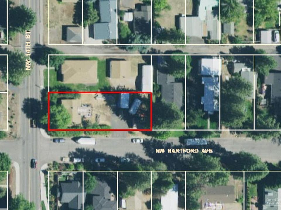 Value is in the land on this huge 8,250 sq ft lot in the heart of the westside. Small 2 bed 1 bath home with a few garages to buy some time for a future build on this great lot. 150ft of NW Hartford Frontage and 55 ft of NW 14th st frontage.