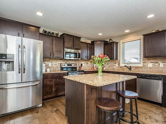 Welcome to this wonderful Grimes home! The first floor features hardwood floors throughout, a mud-shelf for coats & shoes, kitchen island, granite countertops, and great room with fireplace & built-in component shelf. The lighted stairway guides you to the second floor which offers four bedrooms, master en-suite with dual vanity & walk-in closet, tiled bathroom floors, and a laundry room. The lower level is stubbed for future finish and includes a water softener system. Perfectly located on a dead-end street in a great Autumn Park neighborhood. Schedule your showing today!