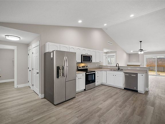Beautifully updated bi-attached ranch home in Grimes with no HOA dues! This home been updated with new LVP and trim throughout. The main level offers spacious eat-in kitchen with a breakfast bar overlooking the living room area with fireplace and a slider leading to the deck. The main level has two bedrooms with primary bath and a guest bathroom. Access to two car attached garage and a laundry area is also located on main level. The lower level has an additional bedroom and a living room space (& is stubbed for a bath). All in Dallas Grimes School district. Schedule your showing today!
