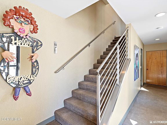 This lovely Bootlegger's Cove condo features unobstructed inlet/skyscape views, east/south/west sun exposure and an architect-designed remodel with high-end organic finishes (hardwoods, granite, metals) that beautifully compliment the oceanscape/skyscape outside. The home rests in the heart of Anchorage, but feels quite private/quiet inside, like a hidden, sun-filled, urban-oceanside retreat.