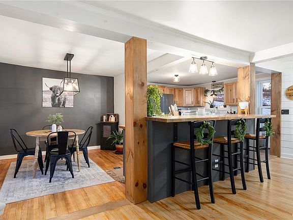 3 bedroom 2 bath...beautiful first floor open concept....large covered deck with hot tub...3 acres with a extra large garage/barn.