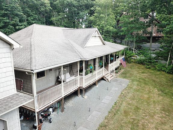 Stunning custom-built home in amenity-filled Hemlock Farms. You will be amazed at the grandeur of the Great Room w/a soaring stone fireplace and gleaming hardwood floors. The modern kitchen complete with granite throughout will make the most discerning foodies jealous. The spacious master bedroom features a master bath with a jetted tub and fabulous custom stone shower. The lower level gives you plenty extra space - complete with a full kitchen, bedroom, living room and 2 extra rooms that provide endless possibilities... theater room, man cave, hobby room. Imagine relaxing summer evenings on the wrap around porch or entertaining your beautifully landscaped backyard complete with patio and goldfish pond. Don't forget about the enormous 2 car garage. You need to experience it in person!
