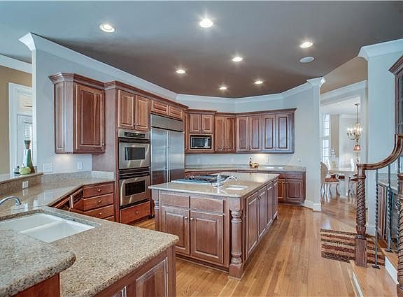Fine finishes in this 6 bedroom Brentwood home. 10' ceilings, heavy moldings throughout. Formal dining & living rooms. Family room, den & office. 3 fireplaces. 5 car garage. Theatre. Exercise rm. In-law suite w/full kit. Fenced backyard w/salt water pool.(Uploaded Monday)