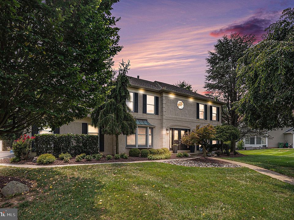 New on Market! This stunning charmer is open, bright, and airy, offering 5 bedrooms, 2 full baths, and 2 powder rooms, with approximately 3,500 sq. ft. of living space including a wonderful finished basement with powder room—all in meticulous condition. Located in the sought-after Dublin Hunt community, just steps away from Starbucks, Sprouts Market, HomeGoods, great dining spots, and more, this home is the perfect blend of comfort and convenience. Set on a beautifully landscaped lot framed by trees, the property features a private gated pool and spa with lantern lighting—an entertainer’s dream! The built-in outdoor bar and dining area with electric awning make it ideal for gatherings with family and friends. The home’s incredible curb appeal is enhanced by a double-door entry with sidelights leading into a dramatic two-story foyer with turned staircase, elegant chandelier, tile, and hardwood floors throughout the main level. The heart of the home is the white gourmet island kitchen, boasting quartz countertops, stainless steel Sub-Zero refrigerator, stainless steel ovens with commercial range hood, two warming drawers, built-in microwave, wine rack, wine/coffee bar, and two pantry closets. A bumped-out breakfast room with skylights, electric window shades, and plantation shutters in many other rooms provides a bright and welcoming space with direct access to the outdoor dining area—perfect for morning coffee or summer BBQs. The second floor is as beautiful as the first floor. Double door entry into the stunning main bedroom suite with a totally refurbished bathroom, a great walk in closet , plus an additional built in closet. There are three other spacious bedrooms and a refurbished hall bath. Additional highlights include: LED recessed lighting throughout this stunning home with under-cabinet ambient lighting in the kitchen. The gourmet kitchen is open to the living room and family room. There is a striking floor-to-ceiling stone gas fireplace. The fifth bedroom/guest room is on the main level and the beautiful powder room and laundry room completes the first floor. The finished basement with powder room—perfect for a gym, media room, office, or playroom. This home truly has it all—modern upgrades, timeless charm, and spaces designed for both relaxation and entertaining. All within the award-winning Upper Dublin Township School District—one of the top-rated in the area