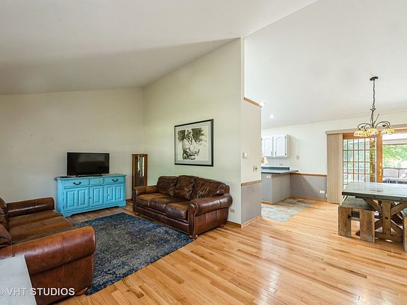The owners of this lovely 4 bedroom, 3 full bath raised ranch home in historic Woodstock are reluctant to leave, but new opportunities present themselves elsewhere. Woodstock is famous for its picturesque square, site of the Farmers' Market and the setting for the iconic movie "Groundhog Day." Should you need a gateway to downtown Chicago, the Metra offers easy commuter transportation. In the time they have lived here, the current owners have made many improvements to the property, including landscaping and fencing, a new dishwasher, and a new air conditioning unit to name a few. Set in a quiet neighborhood adorned with mature trees and sidewalks, this house is conveniently located to schools and the McHenry County Government Center. The home features an open floor plan with a spacious kitchen and dining area leading to an expansive deck and gazebo, perfect for entertaining family and friends. The yard has been professionally landscaped and the backyard is fully fenced-in, affording security and privacy. The primary bedroom is located on the second floor and has a remodeled full bath attached. Two more spacious bedrooms and a full bath complete this level. The lower level boasts an English basement with a gas fireplace and a fourth bedroom and full bath providing further living space as well as the laundry and indoor access to the 2.5 car garage. Heating and electric bills are kept to a minimum with the leased solar panels making the house energy efficient. (For a complete list of improvements, please see "Additional Information".)