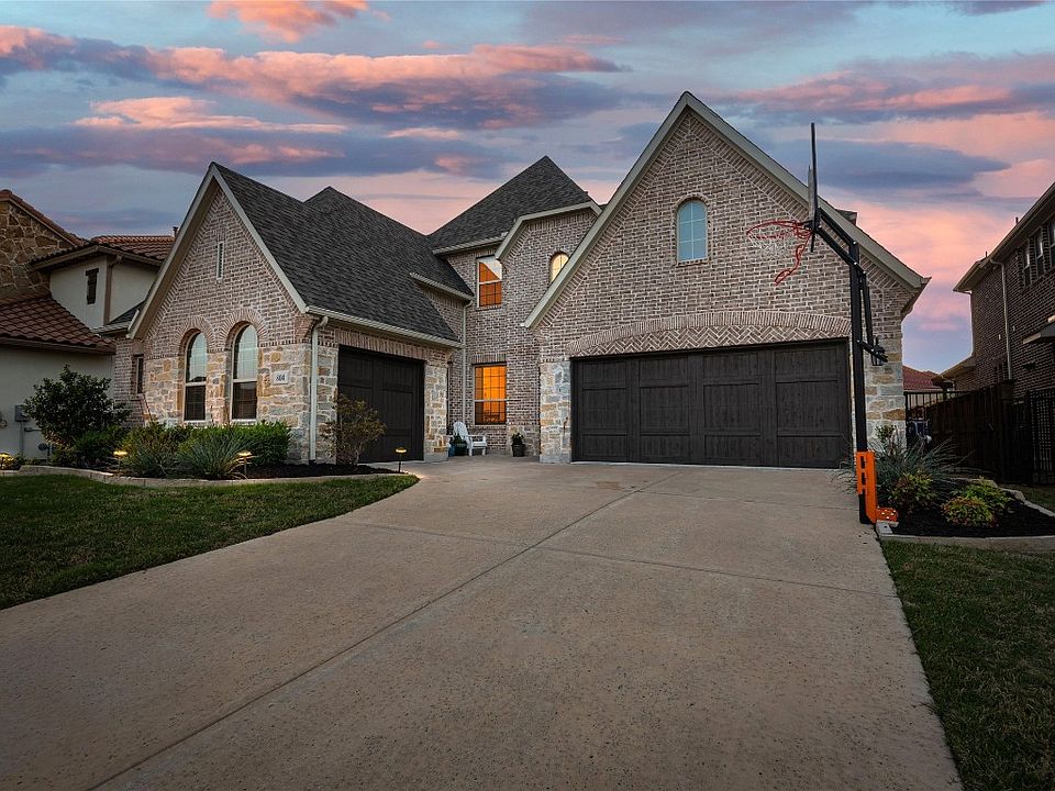 Stunning Darling Custom 5 bedroom with sparkling pool on a private cul de sac in prestigious Montgomery Farm Estates! High end fixtures, extensive hardwoods & designer touches throughout! As you enter past the private courtyard, the entry opens to a dramatic wood staircase & elegant formal dining area. Spacious family room with beamed ceiling. Amazing island kitchen has high end quartz counters, stainless steel appliances, gas cook top, butlers pantry and even a cozy fireplace in the breakfast area. Large primary suite and luxurious bath plus a bonus guest suite down with full bath. Private study with French doors overlooking the pool. Upstairs game room & media room plus 3 large secondary bedrooms. Private backyard oasis with custom heated pool, extended covered patio, outdoor kitchen with built-in grill & bar and extensive travertine paver decking perfect for entertaining. Energy efficient design & close to Watters Creek shopping & dining!
