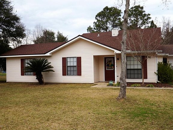 Move-in ready home located in an X Flood zone! This home is situated on a spacious lot and features an open living area with a fireplace and cathedral ceilings, split bedroom plan, master suite with vaulted ceilings, fireplace, large soaker tub, and a walk-in closet, a screened in back porch with access from kitchen and master suite, attached garage, spacious laundry room, fenced back yard, storage shed, alarm system, and security cameras. Don't miss out on this one!