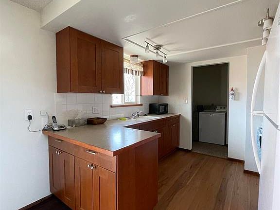 An in town charmer, this home has been meticulously cared for and maintained. There has been insulation added, new double pane windows and storm doors installed, pro-panel metal roof and exterior is now stucco. All the important items! The kitchen has new cabinetry and countertops with tile backsplash & wood plank flooring. The home sits next to the walking path through town which seems like its own park! This property has a very large back yard and alley access which makes it perfect if you decide to take advantage of having an Accessary Dwelling Unit. Neat as a pin, this property is ready for the next owner. Make it yours!!
