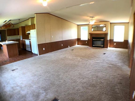 This property is an open floor plan, with eat in kitchen, clean and ready for move in. Spacious living room with a fireplace. It has a front and side deck with additional amenities at the back of the home, such as additional septic and water hook ups for possible RV parking or to build a small shop with amenities. The property sits on a acre corner lot.