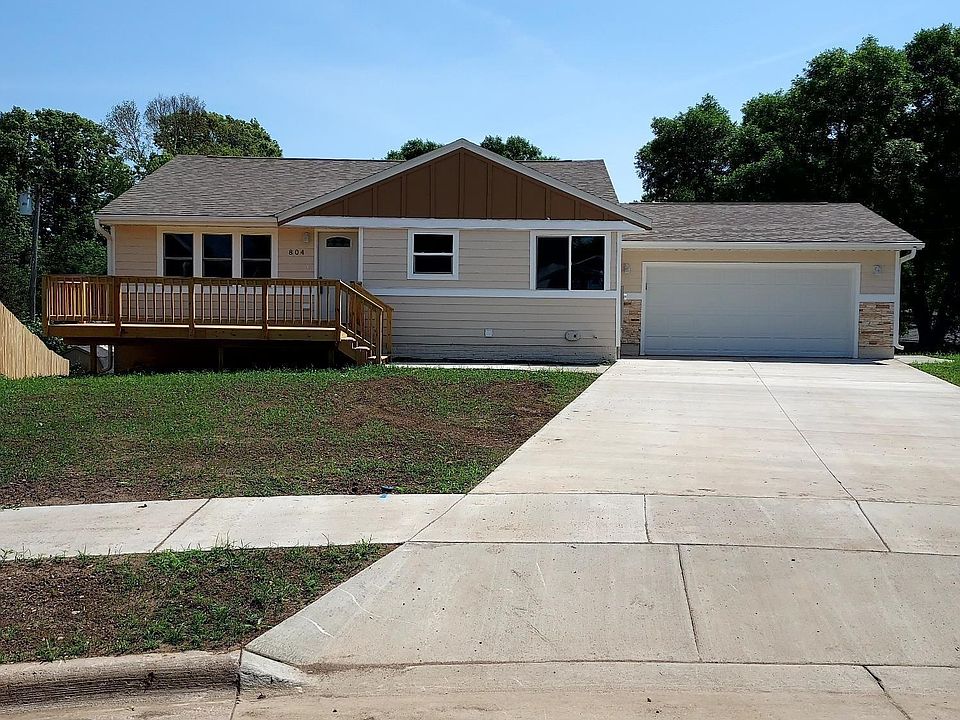 Nearly new construction ranch house with a walk-out basement and on a cul-de-sac! This charming east-side home was moved to this location in 2022 and has a great layout! Improvements include a new foundation, shingles, siding, HVAC, water heater, paint and a double attached garage. The plumbing and electrical have also been updated as well as new windows and doors. On the main floor, you will find a large living room, a spacious kitchen and dining room with new cabinets, and stainless steel appliances, a full bathroom with a double vanity and linen closet, and two nice sized bedrooms with hardwood floors. The lower level is ready to be finished with two additional bedrooms, a family room, and second bathroom. The new washer/dryer are in the basement. The attached garage is great for SD winters! Fantastic location that is close to downtown or the east side for shopping and restaurants. You will love this neighborhood and your neighbors! NOTE: Some photos are virtually staged.