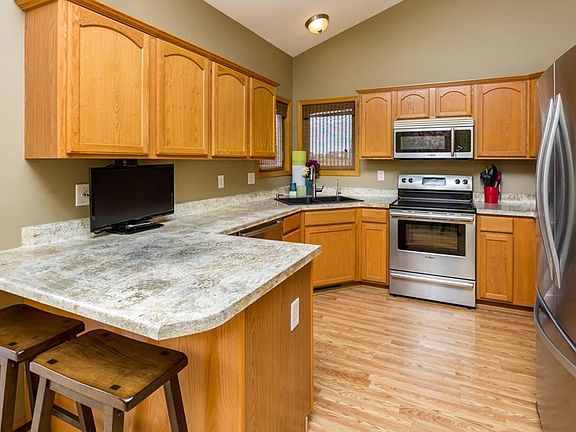 One of the best values in Grimes right now! Nearly 1,800 sq ft of finish, with 3 bedrooms, 3 bathrooms, finished daylight lower level and open concept. Updates include a brand new roof, new tall vinyl siding, down spouts, and freshly stained deck. Don't miss out on this one, its super clean and located in the popular Meadowlark South neighborhood! Easy access to 128th and HWY 141. Contact your realtor today for a private showing, this one won't last long!