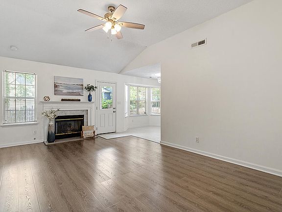 Light & bright ranch on flat lot in great Holly Springs location. Vaulted ceilings, laminate flooring and gas logs in living room. Updated kitchen with granite & tile backsplash. Spacious primary suite with vaulted ceiling and bath with dual vanity & plus walk in closet. Two additional BR & updated hall bath with gorgeous vanity & marble tile floors. Large, trex deck overlooks landscaped, fenced backyard. Minutes to downtown, groceries, shops, Ting Park & Stadium. Walk to community pool & playground. HURRY!
