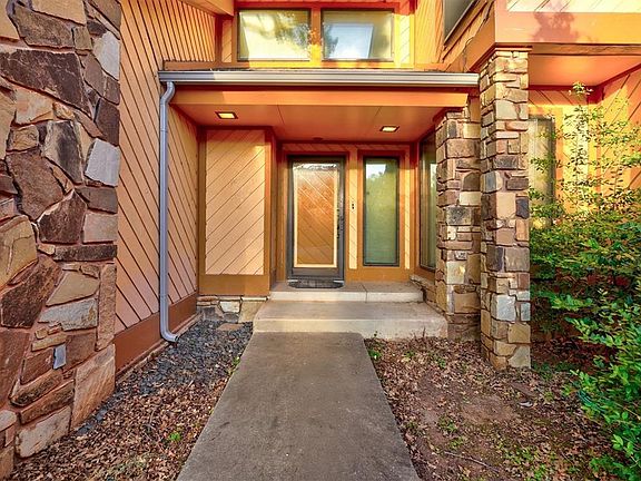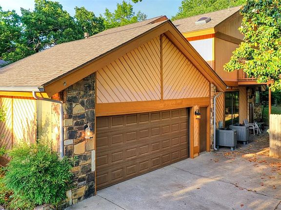 Quietly nested on a cul-de-sac, this Chimney Hill 3 bedroom, 2.1 bathroom home is conveniently located next to the beloved Hafer Park with quick access to the I-35 and I-44 corridor. Upon entry the living room is filled with abundant natural light through double French doors that lead to the tiered backyard. Vaulted ceilings throughout provide airy views from all angles. The main floor owner’s suite features a large walk-in closet with ensuite double vanity, shower, soaker tub, and private water closet. Multi point access to the dining space with built in storage. The living room includes a passthrough wet bar, a stone finished wood burning fireplace, and an open staircase with an overlooking landing and loft. Two nicely sized bedrooms up, each with their own separate vanity, with a shared tub/shower. The second-floor patio provides a vast vantage point that overlooks the tree lined backyard. A dine-in kitchen with floor to ceiling windows, backyard access perfect for patio cookouts, a half bathroom, and laundry space round out the main floor. The side entry two car garage is complete with an in-floor storm shelter plus room for storage. Create new memories in the lush wraparound backyard, adorned with stone pathways, a raised deck, and work shed. Beautiful natural woodwork and stone accents throughout. The high impact roof and water heater were installed in 2019, and both HVAC systems were replaced in 2018. Owned by the same family since new. Neighborhood HOA provides access to the park, pool, tennis and basketball courts, and rec center. Contact listing Agent to schedule a private showing. Buyer to verify all information.