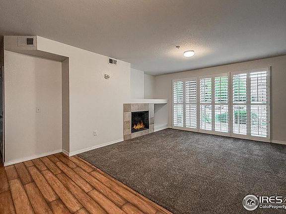 Pristine GROUND FLOOR condo ready to go! Move right in to this immaculate 2 bedroom unit with reserved parking directly in front. Open floor plan accentuated with living fireplace and plantation shutters. Well-appointed kitchen w/ stainless appliances, 42" upper cabinets, tile backsplash. Spacious primary bedroom with en suite bath. 2nd full bath adjacent to 2nd bedroom. Washer and Dryer included! Attractive, well maintained community with pool and walking distance to Longmont's newest park. Convenient location near shopping, schools, amenities and more.