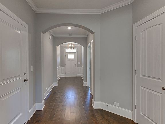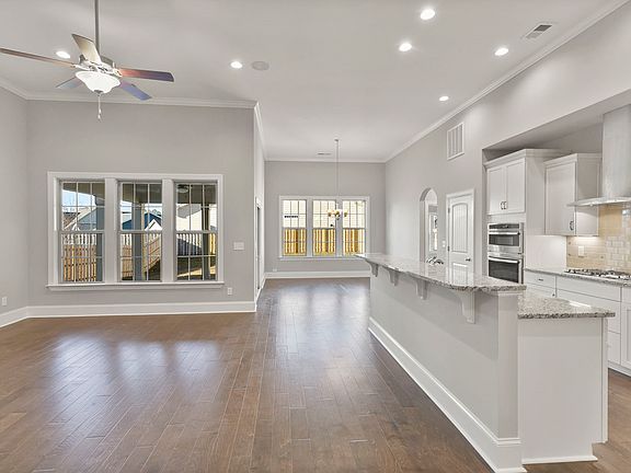 The Fullerton has three bedrooms and three full baths including the master bedroom and a guest suite on the main level! Arched openings and five-inch hand-scraped hardwood floors flow through the main living area. This Fullerton also features twelve-foot ceilings in the spacious gourmet kitchen, huge informal dining area, and family room. The open kitchen includes lots of white cabinets with upgraded construction, under-cabinet lighting, granite countertops, music port, separate pantry, and stainless appliances with a gas cooktop. The boxed ceiling master suite is tucked away on the first floor and features a large tile shower, floor tile, and walk-in closet. This home also has a tiled laundry room with wall and base cabinets, covered patio, privacy fence, and full yard irrigation.
