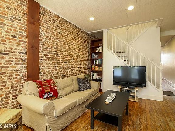 Adorable bow front rowhome on tree lined street in desirable Hampden! This classic city home offers gleaming original hardwood floors, enviable exposed brick and recessed lighting throughout, separate dining room, and brand new, stainless steel appliances . The upper floor has surprisingly spacious bedrooms and an updated bathroom. Backyard has parking potential!