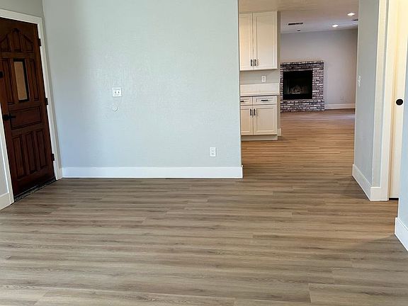Newly renovated 1517 sq. ft. 3 bedroom, 2 bath house. A large living room with laminate flooring. The kitchen has all new appliances including a built-in microwave, new cabinetry, and quartz countertops and is open to the dining & family room. The family room has a gas brick fireplace and sliding doors that lead to a covered patio. Laminate floors throughout. Quartz countertops and double sinks in the full guest bathroom. Bedrooms have ceiling fans and laminate flooring. The primary bedroom has an en suite with stand-alone shower & quartz countertops. The primary bedroom also has sliding doors that also lead to the covered patio. The hallway has lots of built-in storage cabinets, including a coat closet. Washer/Dryer hook-up in garage. Large backyard with dog run and RV or BOAT PARKING (ACCESS IN THE REAR). Evaporative cooler, & forced air heating. Refrigerator provided but not warranted. Pets are subject to the owner's approval. Pets are subject to owner approval.