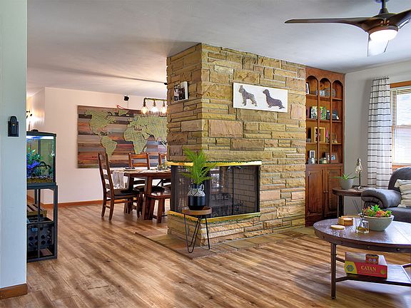 - Fireplace features: Double Sided, Gas Log, Masonry, Living Room, Dining Room