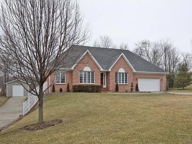 Custom built home! Spacious brick ranch offers 3 bedrooms, 2 1/2 baths, built-in book case surround sound, gorgeous glassed-in Florida Rm, covered deck, 2 car garage w/workshop on LL, 2 car detached w/20 x 30 Pole barn with 220 electric.