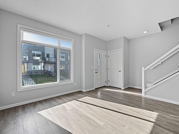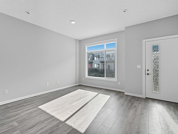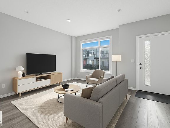 Bright, modern & spacious 3 bed/2.5 bath townhouse w/ double attached garage in the desirable Walker neighborhood. 1360 sf total living space. Perfect for first time home owners or investors! Main floor features 9' ceilings, vinyl plank floors, laundry, upgraded glass railing & a roomy living room filled with natural light from the large South facing window. Kitchen offers a functional layout, stainless steel appliances, quartz countertops & a huge island with eating bar. Upper level also has 9' ceilings & large primary bedrm w/ 4pc ensuite. Two other well sized bedrms & 4 pc main bath complete this level. Lower level flex room is perfect for an office, play rm, exercise area, or extra storage space! Energy-efficient mechanical including HRV & tankless hot water for a lower utility bill. This well maintained complex offers visitor parking and nearby walking trails & lake. Conveniently close to shopping, schools & public transit. Quick access to commuter routes incl Henday