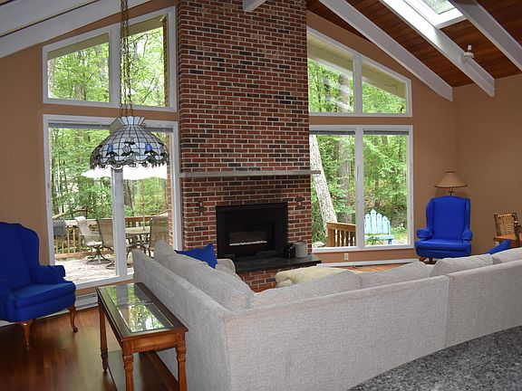 This fabulously located, walk to the lake, 4 bed, 2 bath contemporary on a cul-de-sac is waiting for your name sign. Open floor plan with hardwood floors, T&G ceilings, skylights, huge screen porch, partially finished basement and so much more. Private setting in the prestigious, gated community of Hemlock Farms. This is a real beauty.
