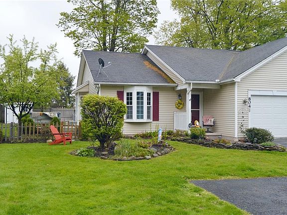 Fantastic clean and bright Fairport NY townhouse with Fairport Electric, Schools and great location to shopping and more! This wonderful home features 2 bedrooms, 2 full baths, a private yard and finished basement with rec area and plenty of storage. Landscaped fenced yard with deck and shed. Hardwood floors, granite countertops, vaulted ceilings, newer roof, included appliances and much more await! No HOA, Self Managed