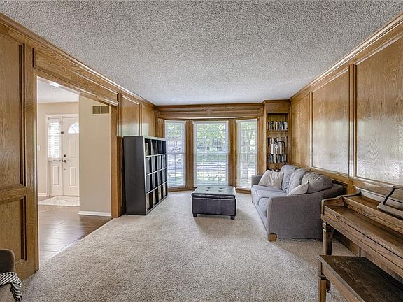This 4 bed, 2.5 bath two-story is located in the coveted Oak Hill subdivision not far from the ever-growing Lenexa City Center. Current owners have upgraded many of the big ticket items. A few features to note: fully appointed kitchen with granite and stainless appliances, refrigerator remains, under cabinet lighting, planning desk, eat-in area, formal dining, large living room/study/playroom with pocket doors for privacy, family room with built-ins surrounding beautiful stone fireplace. Primary suite offers separate sitting room with a fireplace, separated from bath area by new barn door. All bedrooms have plentiful closet/storage space. Expansive lot with new deck. Deck is accessible from kitchen eat-in area. Large storage space available in unfinished lower level. New a/c, new deck, new dishwasher, new microwave, new garage door opener, newer water heater, washer/dryer transfer to new buyer - see list in supplements.