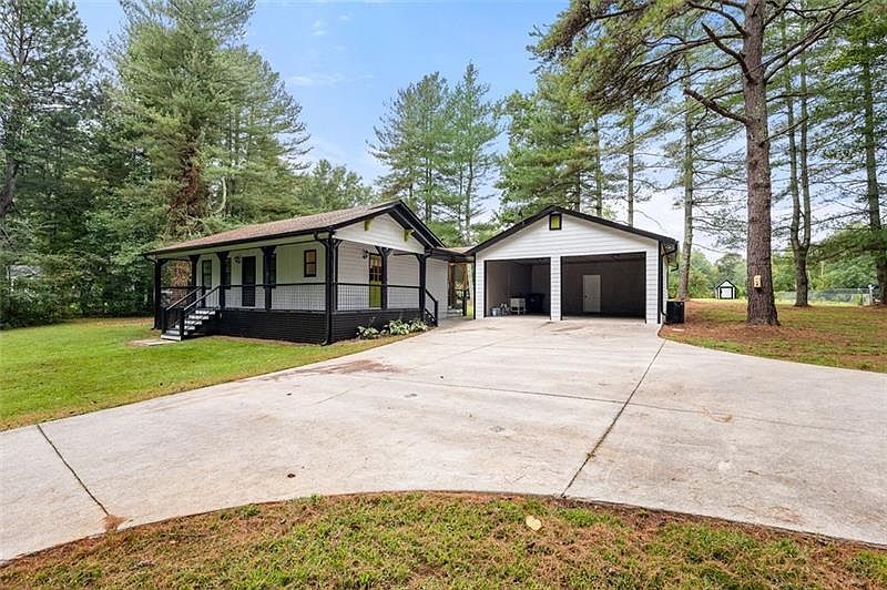 This one of a kind FULLY RENOVATED 2 bed 2 bath sitting on 1 Acre sits in a FULLY FENCED in yard in a secluded neighborhood where nature surrounds. Just minutes away from GA 400, shopping, top rated schools, and more! This unique home includes a large covered front and back porch, oversized detached garage with attached 8x24 storage shed. A big kitchen with beautiful kitchen cabinets, granite countertops, and bar. Spacious Living Room that will accommodate greatly for friends and family. With both bedrooms including doors to the back porch. INCLUDED with NEW Appliances, NEW Washer and Dryer, NEW Granite Countertops, NEW backsplash NEW Exterior and Interior Paint, NEW LVP Flooring, NEW Light Fixtures, and NEW bathroom Fixtures. You do not want to miss out on this house please come see TODAY!