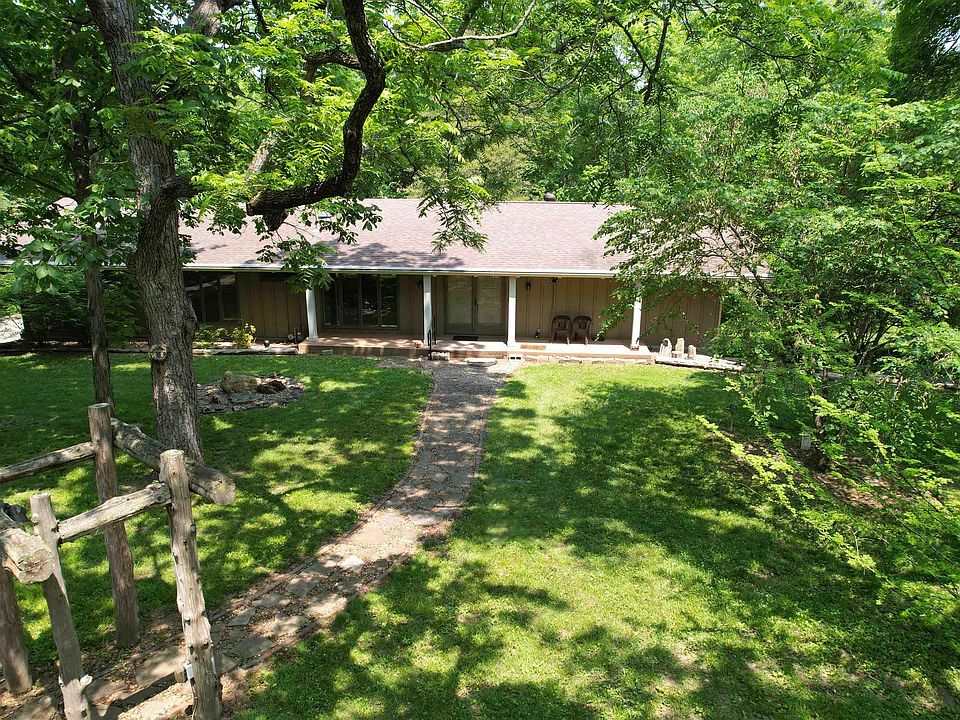 Great space inside & out! This 4, could be 5 bedroom, 3 bath home has great square footage. Massive living room has open concept with dining area, high beamed ceiling, floor to ceiling stone fireplace, and tons of windows. Kitchen offers lots of cabinet space and pantry. You'll love the rustic feel of 2nd main floor living room. Huge main floor primary bedroom suite! Walkout basement with additional family room with fireplace, bedroom large enough to divide into 2, and full bath. Lower level laundry with lots of cabinets and laundry shoot. The back deck offers perfect place to entertain. Multiple sheds and 2-car attached garage with storage. Located in Walnut Hills on private wooded lot just under an acre on dead end street. Truly a must see home!