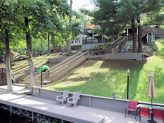 The one you've been waiting for! Large lot, generous decks and docks with fantastic water for swimming! The gorgeous nicely updated home has most of the living space on the main level including bedroom, full bath, updated kitchen open to dining and living area full of windows with vaulted ceiling and a loft overlooking it, large office and gorgeous sunroom perfect for morning coffee or for reading a good book. Above the garage is a very spacious private bedroom. The walk-out lower level has another living space, full bath, laundry and two bonus rooms currently used for guests. Main level has wrap around deck with stairs to lower level. Lower level covered deck with easy stairs to additional patio spaces, expansive docks and swim area.
