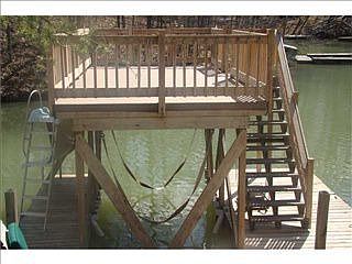 One of the best Private Coves on Cordry. If you like privacy, there's privately owned and wooded acreage across the cove with no housing. The water is also very deep for swimming, diving, fishing and boat access. Also, there is a 2 story deck, boat dock, lift and a separate deck/patio. This updated home is very cozy and charming. You will love entertaining or relaxing on the upper wrap around balcony (gated for dogs) overlooking a stunning view. Lastly, a 300 sq ft lower level storage.