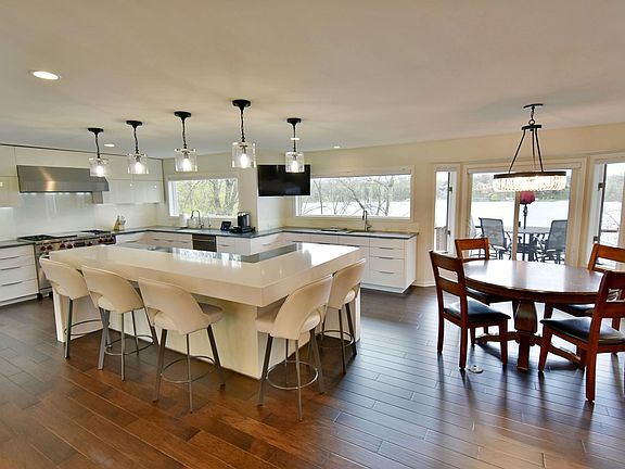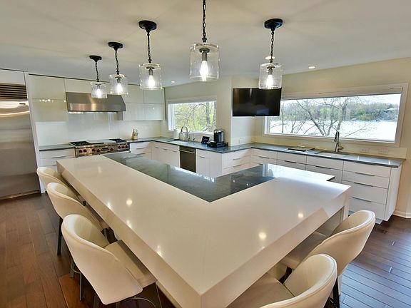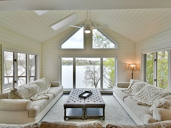 Spectacular West-Facing Walkout Rambler on Fish Lake! Welcome to your dream lakeside retreat! This stunning 6-bedroom, 5-bath walkout rambler showcases breathtaking west-facing panoramic views of Fish Lake. Thoughtfully designed for comfort, entertaining, and multi-generational living, it features an in-law apartment, a 3-stall garage with beautiful epoxy floors, an additional underground garage, and expansive multi-level decks — perfect for embracing lake life. The main level offers a luxurious primary suite with a fireplace, private en-suite luxury bath with oversized custom steam shower and dual shower heads, and direct access to a private deck complete with a hot tub positioned to capture unforgettable sunsets. Two additional fireplaces add a cozy touch to both the living and family rooms. A bright sunroom, highlighted by Andersen windows and Hardie Board siding, provides even more space to relax and take in the views. The chef’s kitchen impresses with a Sub-Zero refrigerator, Corsite countertops, Wolf gas range with griddle and steam oven, and stylish new lighting throughout. A Jack-and-Jill bathroom, three bedrooms on one level, a lower-level bar area, and extensive storage options make the home both functional and inviting. Recent updates include a new concrete driveway (2023), new storm and garage doors, a new awning (2024), a freshly cleaned and refreshed cedar roof, and Smart home upgrades (including a Salus Smart controller for in-floor heat/basement air, and Honeywell system for the main/upper floors). Additional features include a 12-zone sprinkler system, invisible dog fence, radon mitigation system, Govee lighting, new water heater, upgraded city water connection, and washer/dryer on both upper and lower levels. Outdoor living is a dream with a professionally designed 26' x 50' beach area, updated retaining walls, and a full drainage system for beauty and stability. An ADT alarm system with glass break protection, water, and heat sensors, plus outdoor cameras, ensures peace of mind. Don’t miss this rare opportunity to live the ultimate lake lifestyle on Fish Lake!