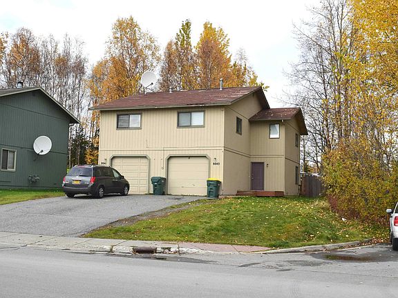 Remodeled S x S duplex with Townhouse style units, 3 bed, 1.5 Bath, W/D, gar, F/P, deck, & partially fenced back yard. Building had New roof, windows, & exterior paint in 2019. 8043 has new interior paint, carpet & top down bottom up blinds in Living Rm. Bedrooms are good sized & master has W/I closet & bath access. Convenient location close to JBER, schools, shopping, parks & bike trails.