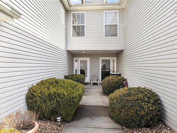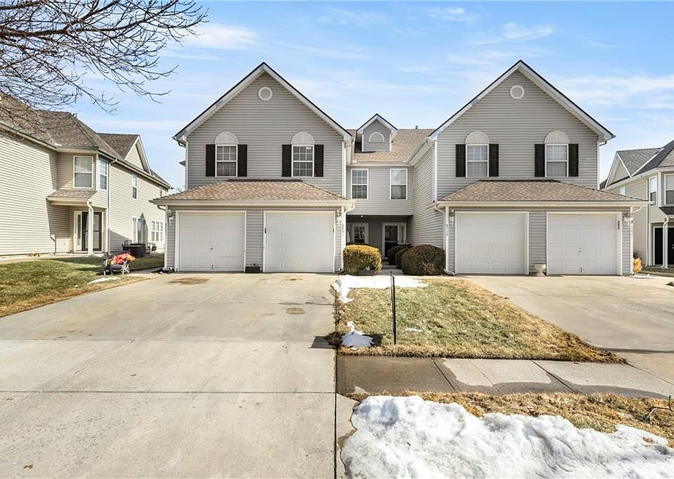 Well-Maintained & Move-In Ready in Brighton Woods! This maintenance-provided townhome features an open floor plan with vaulted ceilings, skylights, and a cozy fireplace in the great room, filling the space with natural light. The main-level master suite offers a double vanity and a walk-in closet for ample storage. The large eat-in kitchen boasts plenty of cabinetry, perfect for all your cooking needs. Step outside to a private patio that backs to peaceful common space. Upstairs, you'll find a convenient bedroom-level laundry. A deep one-car garage provides extra storage. Fantastic location near a movie theater, restaurants, and with quick highway access to I-435 & 152!