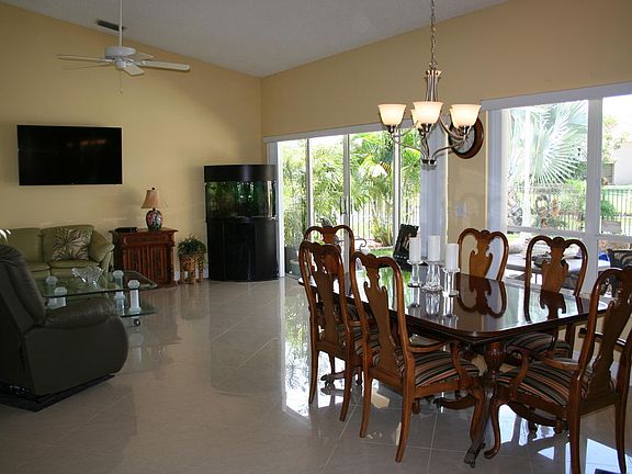 Fabulous non smoking 3/2, lushly landscaped with coconut palms, banana plants, bamboo, pineapple overlooking the lake, with sparkling pool, yard completely fenced with confined ''doggie'' area. New roof and A/C in 2014, 20 by 20 porcelain tile throughout, no carpet, split plan, large master with spacious walk in closet, high ceilings, all energy saving LED lights, eat in kitchen, laundry room and plenty of storage space in attic. Exterior of home was painted in 2018. Washer/Dryer not included in sale.