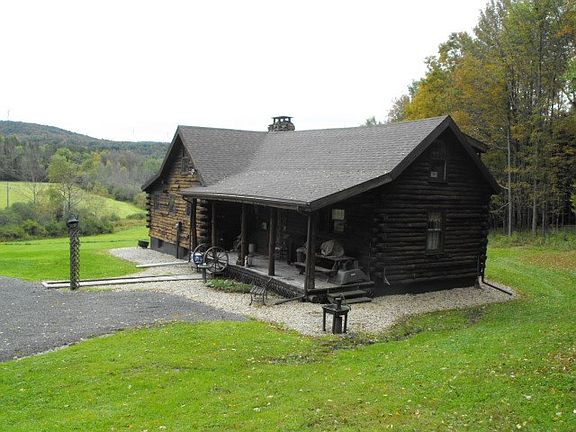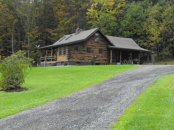 Look at this! Log Home living at its finest. Talk about finding the perfect Log Home on that perfect location. This 3 bedroom 1 bath log home sits upon 32+ acres. The hand peeled logs that surround a massive stone fireplace invite you into that dream of old time living. This home is very deceiving it may seam small but the space is used well for plenty of space for a family. Did I mention for you hunters out there that this property is a haven for plenty of wildlife. Deer bear and turkey's have been known to cruise the grounds. Its a must see, there is to much to describe in words.